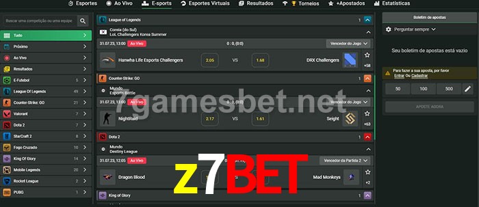 O z7bet oferece uma grande seleção de opções de apostas em e-sports com probabilidades competitivas